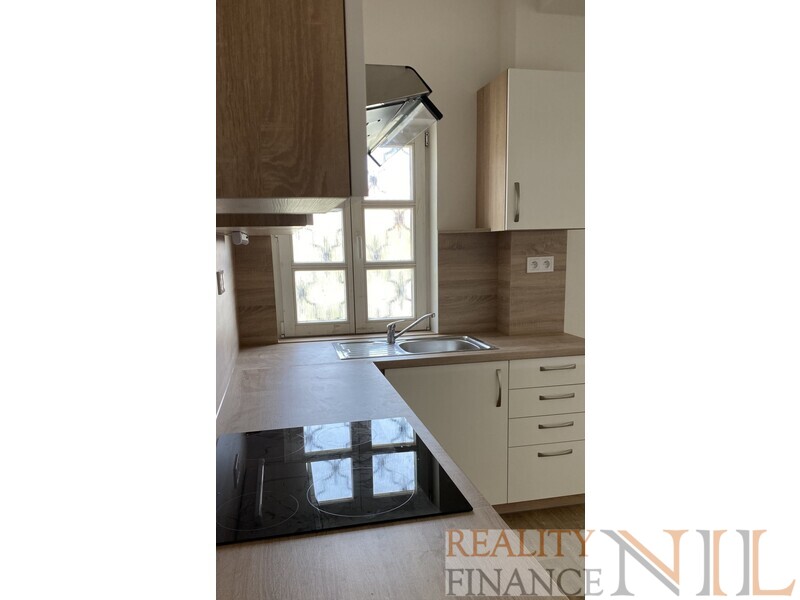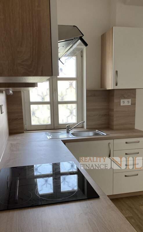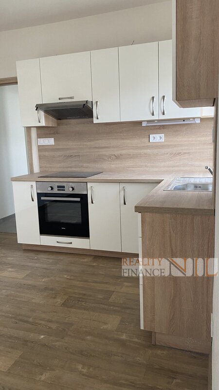 Byt je vybaven kuchyňskou linka včetně vestavěných spotřebičů